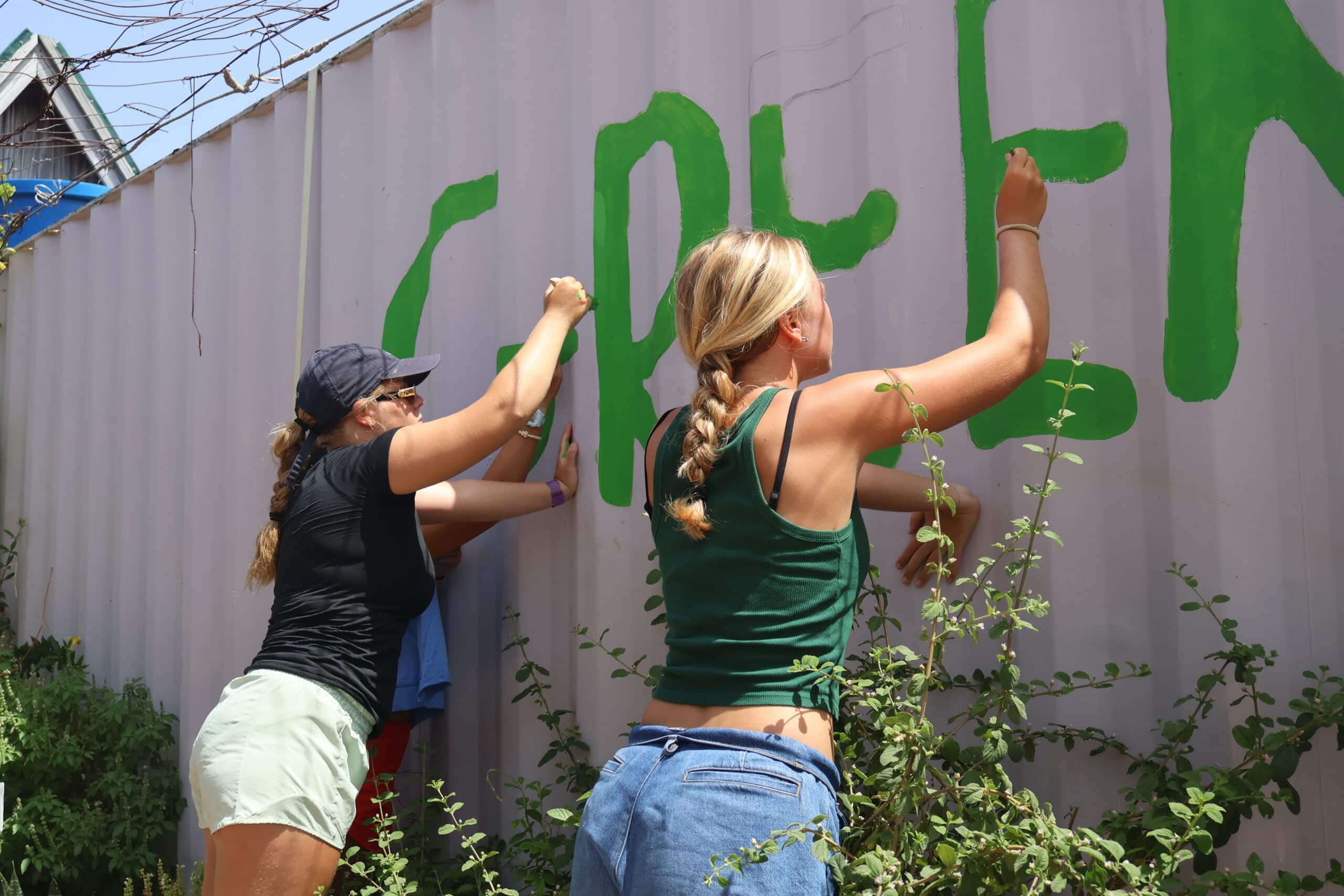 At 9 a.m., the Sierra students were picked up and taxied over to the Eco Park. The team there gave us an awesome tour of their system and explained the work they do. Right now, they’re studying mosquitoes to help reduce the spread of disease, and we learned that male mosquitoes don’t bite — so we even got to stick our hands in a net to test it out! We also saw their composting and trash-sorting systems and how they break down plastics. After lots of “oohs” and “ahhs,” we helped paint a new mural (super fun!) and sorted through some trash.