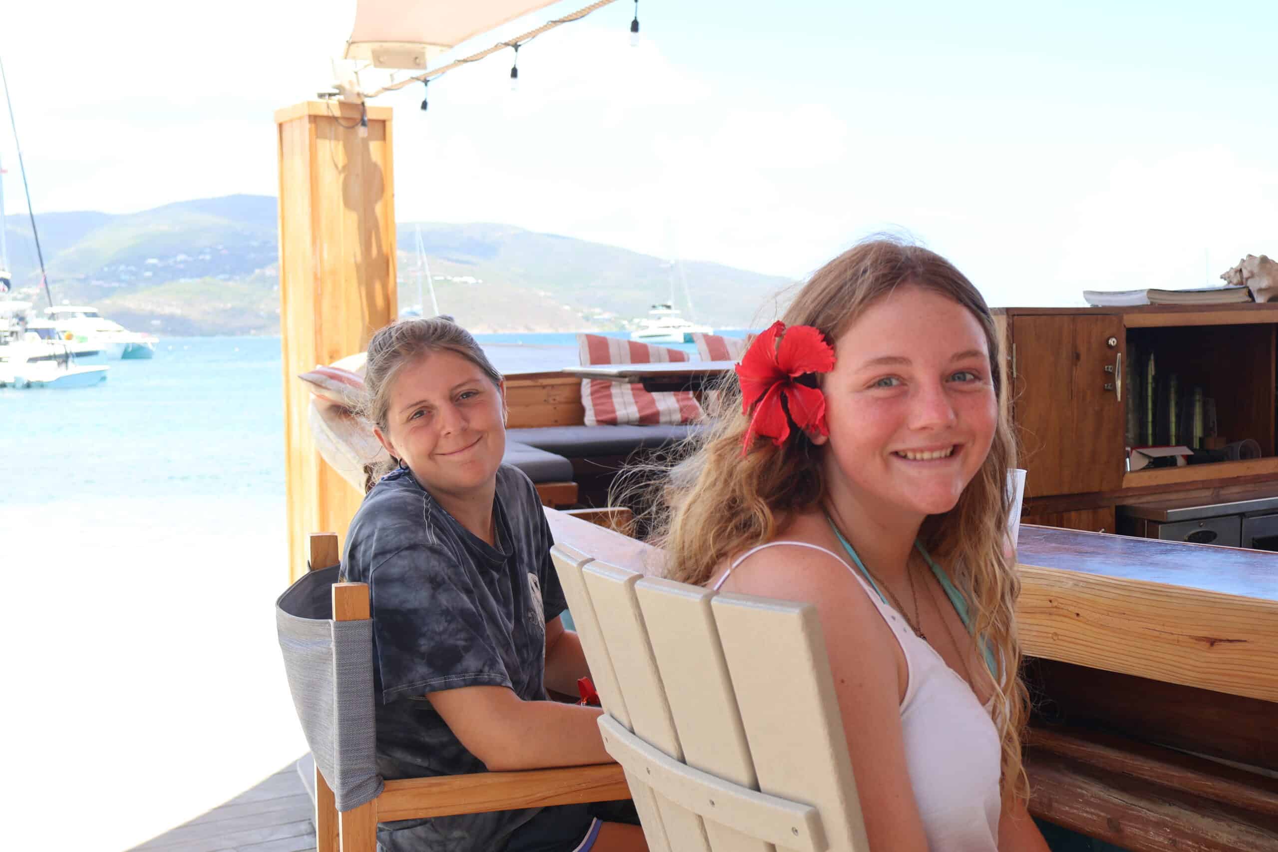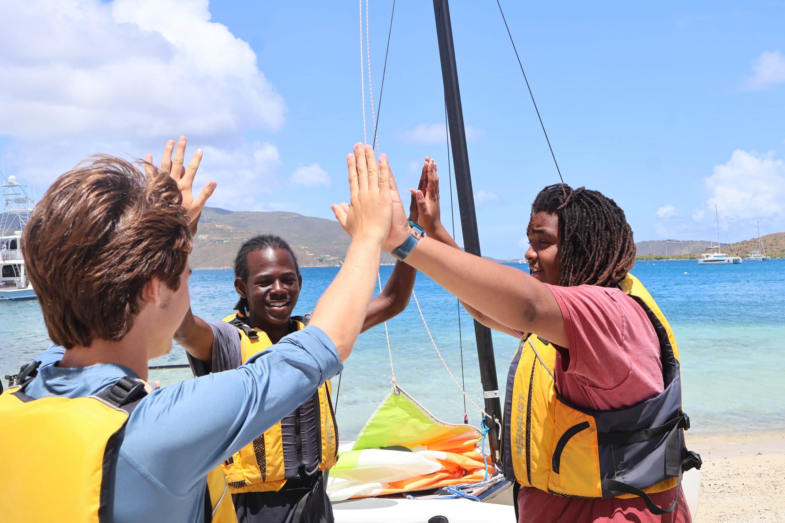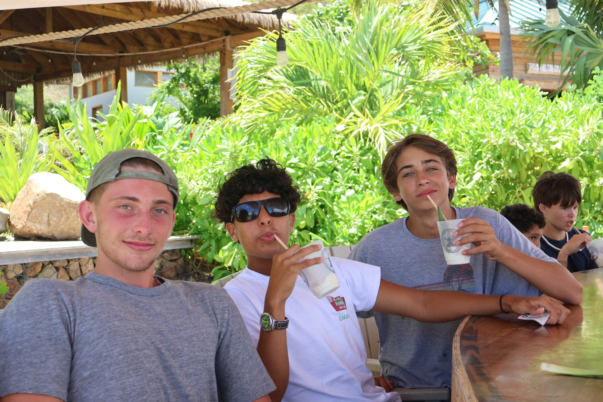 We kicked things off with a breakfast buffet—eggs, toast, cereal, and fresh fruit—which fueled us for the exciting day ahead. Then we shuttled to shore for a few hours at the Bitter End Yacht Club. Shore time here is always a highlight for students with shops, cafés, and water activities to explore. Many got matchas or smoothies as a treat and I saw some very impressive second breakfasts being ordered. Students picked up new hats, bracelets, and cute tops and the Hobie Cats were especially popular. It was amazing watching them put their sailing skills to use on their own.
