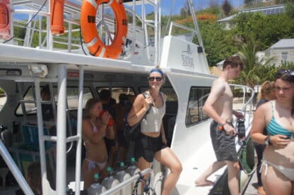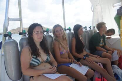 With lunch put away, we headed off to the dive boat, ready to hear the “prior to firsts”. We learned about safety on the dive boat and what to expect from our dive courses. The DSD (Discover Scuba Divers) divers then went back to their boats for some time with water sports and sailing on our Colgate 26s. The students doing their open water course started with learning their dive tables and how to assemble their equipment. Fun divers, advanced open water students, and rescue students hopped on the dive boat for some fun dives and to check out some skills they’ve mastered.