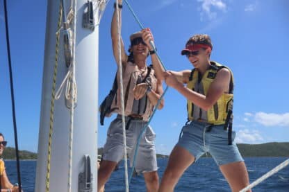 On the sail, we learned about the points of sail and how to moor. Our crew did an amazing job of raising the sails, tacking, and bringing down the sails. At Cooper Island, we picked up a mooring ball and made some lunch. For lunch, we had grilled tomato and cheese with some pineapple.