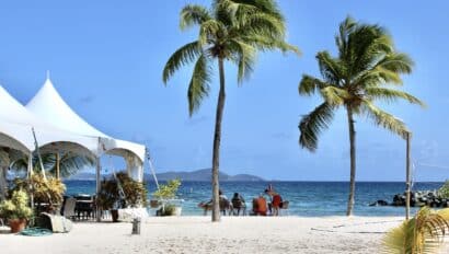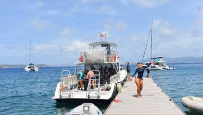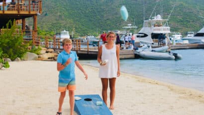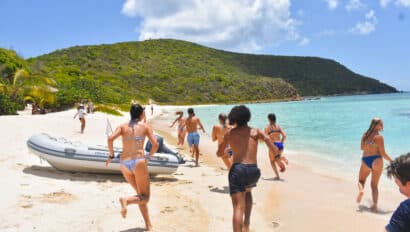 Little Harbor on Jost Van Dyke is an exciting destination. Here we have a barbeque dinner ashore at Sidney’s Peace and Love with the whole fleet. The owner, Strawberry, prepares an authentic Caribbean meal for the whole program to enjoy. After dinner we dance the night away, shop around for some fun souvenirs, and get braids in our hair.