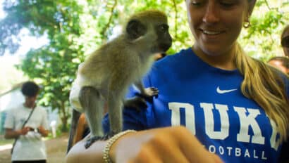 After anchoring at Pinney’s Beach last summer, we went ashore and set up each crew member with a bike and helmet. We then set off as a pack to explore Nevis. The gorgeous ocean views and lush green vistas kept us occupied on the hour long cycle into Charlestown. In town, we stumbled upon a local fruit festival where the crew enjoyed food from stands and music in the town square. After pedaling back and returning our bikes, we cooled off with a swim and chilled on the beach before dinner.
