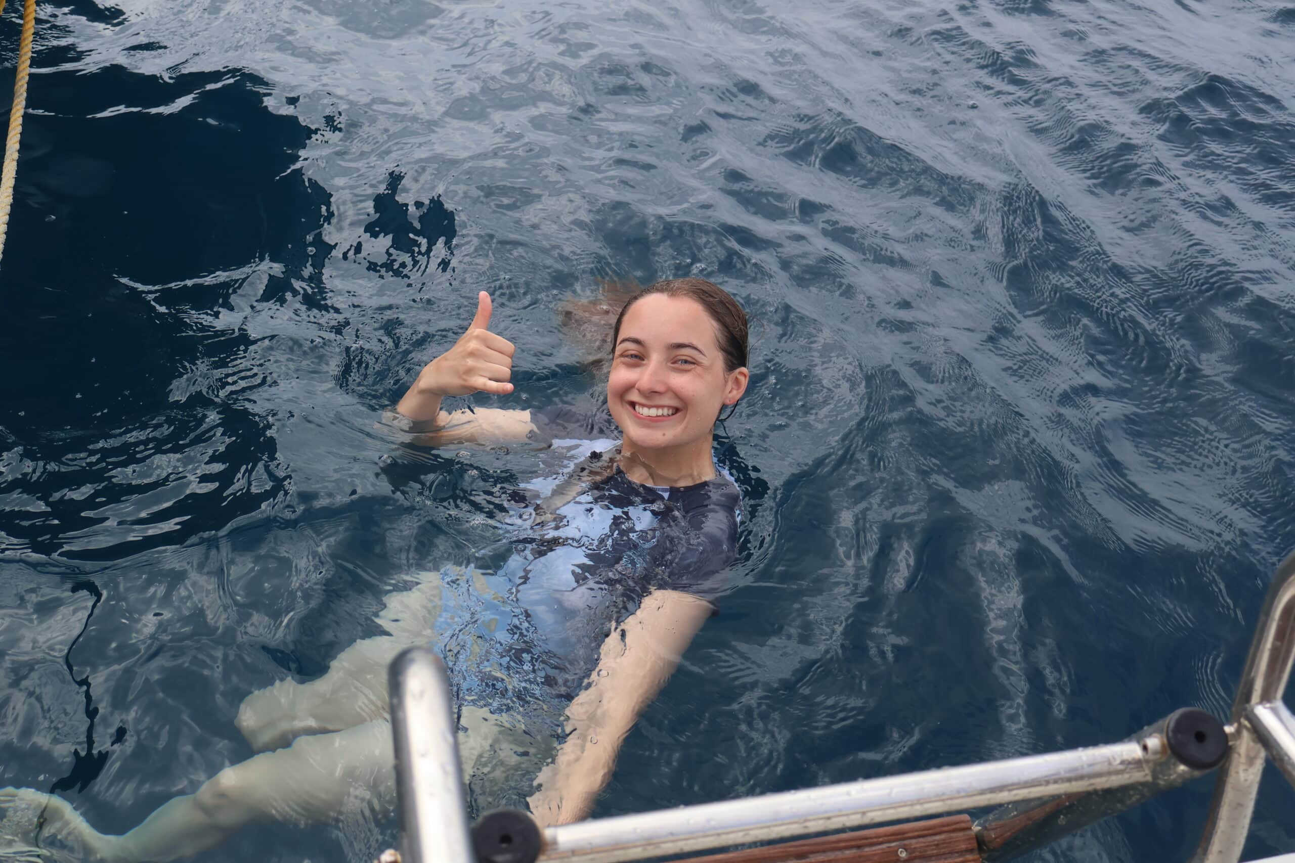 We started bright and early with a delicious breakfast of cinnamon toast and yogurt parfaits. Afterward, we prepared for departure on my boat, Beau Bud. While underway, we practiced safety drills and sailing maneuvers. Mile Hi (the other boat) fell behind due to some technical difficulties but eventually managed to catch up with us.
