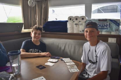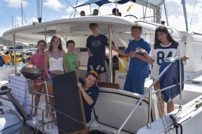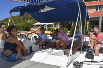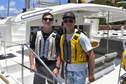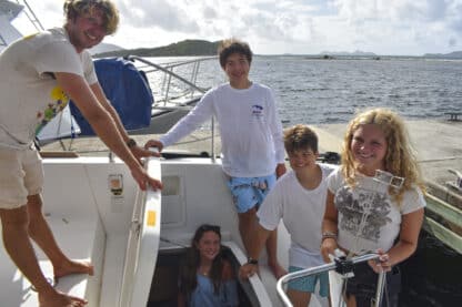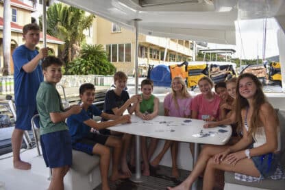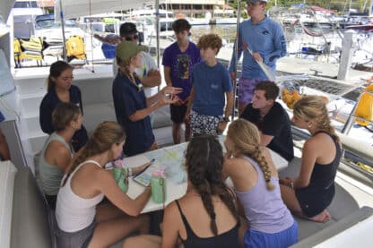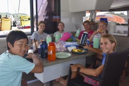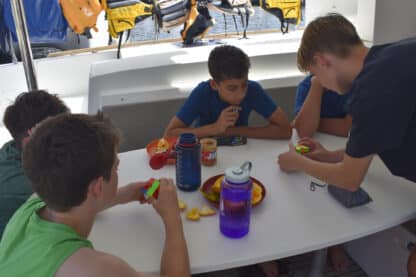 By 4:00 pm, boats were anchored at beautiful Lee Bay. Jelly checks and swim tests were conducted before the first ocean shower demos! After all this was done, students prepared and ate dinner together with their boat mates.