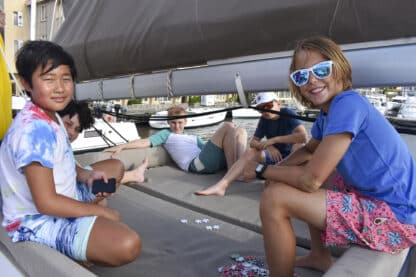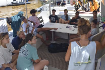On Tuesday morning, students woke up at 7:00 and had a breakfast buffet of cereal, yogurt, bagels, and more. They started Prior to Firsts, which included lessons on the different parts of the boat. They saw the engine and learned how to check the oil, were taught how the winches worked, and were given a tour of all the interior of the boats.
