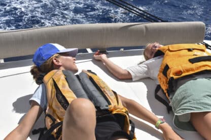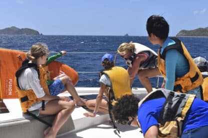 Water sports commenced with great enthusiasm and success, featuring jam-packed tubing and paddleboarding, during which lots of colourful jellyfish were spotted. Ocean showers and dinner were next, with the kids cooking up a storm with a delicious chicken tikka masala. Boat meeting and card games were the best way to end the day, not to mention the cookies and whipped cream!