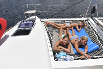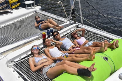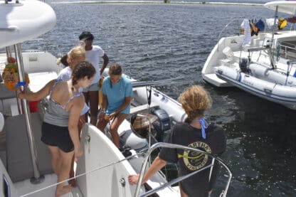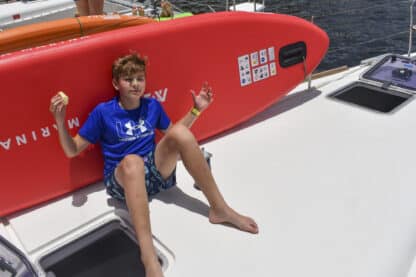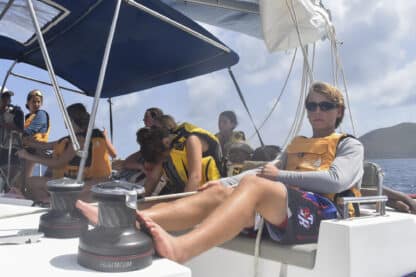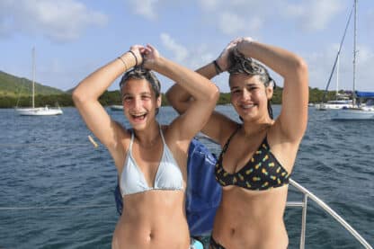 After sailing around Beef Island we lowered the sails and motored into Trellis Bay. The students learned how to moor the boat and then we began the swim test and showers. We all played on the paddle board and in the water with students from all different boats!