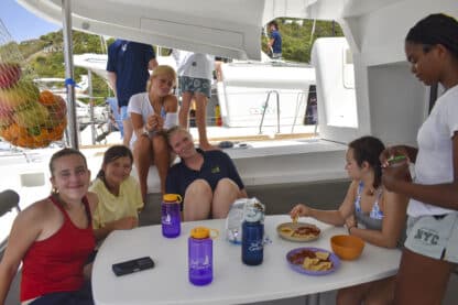 Dinner was chicken fajitas, and everyone helped put it together. We had a boat meeting, played fun games, and had cookies. The students are off to have a good night’s sleep and are very excited to enjoy Cooper Island and water sports tomorrow!
