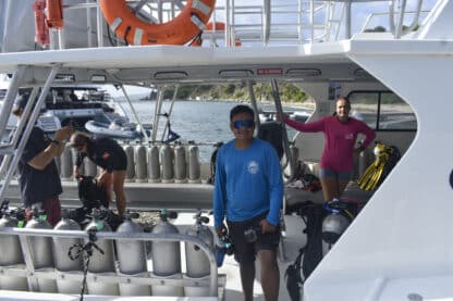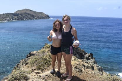 Day 4!! What an eventful day. We started off by waking up at the crack of dawn to the morning views of Cooper Island. We had yogurt parfait for breakfast then started our day by doing pre departure checks and getting our divers ready to head ashore for dives. Once divers left, the rest of our crew got the chance to bond with other boats by having some students join us on Judges Chambers, we made new friends and started our motor journey to Salt Island. Once we got to Salt Island we dingied ashore and went on a hike that included a history lesson about the Rhone wreck. At the top of the hike, we saw a beautiful view of crashing waves and a single plumeria bush.