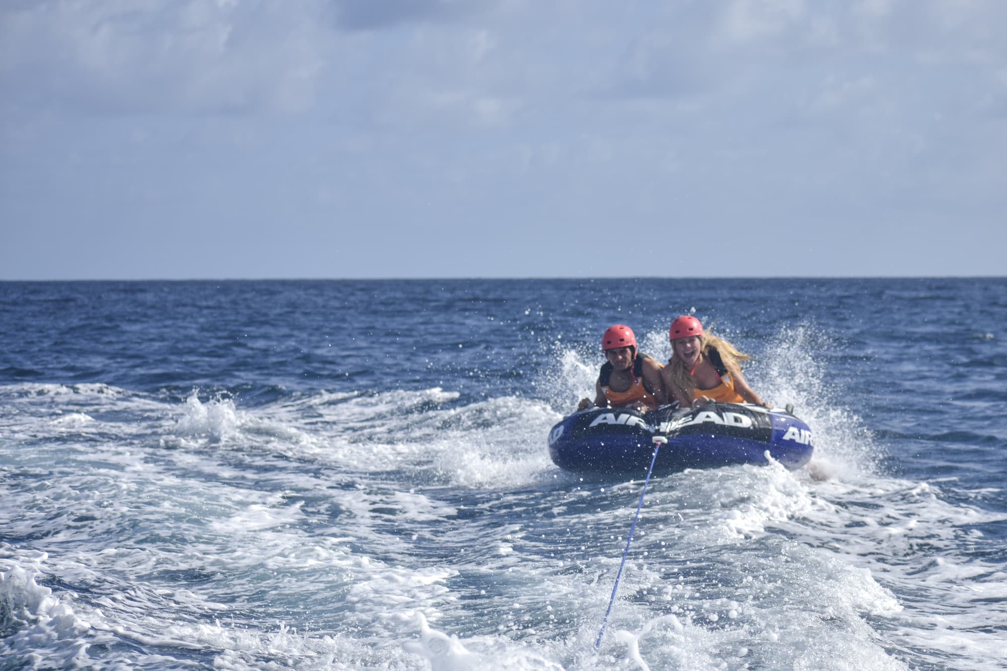 Once we got to the Bight, we had a choice of watersports, snorkeling, or colegating. I went tubing and it was so fun! In the snorkeling group, they snorkeled at a cave. They saw a needlefish and said that the water was clear with beautiful colorful fish. They enjoyed taking photos and enjoying quality time with friends.
