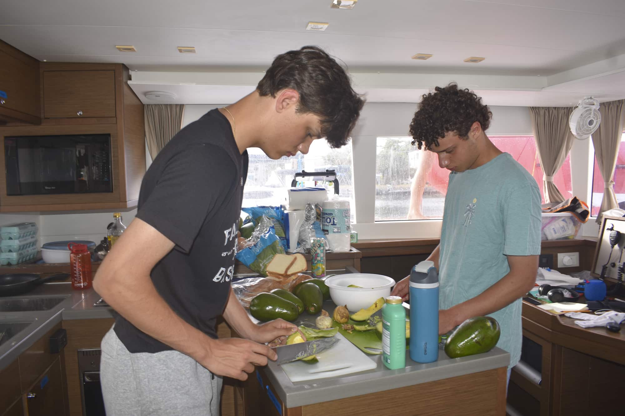 After shore time, we sailed from Nanny Cay to the Bight at Norman Island. It was very fun! We motor-jibbed, played lots of music, relaxed on the deck, and had mac-n-cheese and sausage for lunch.