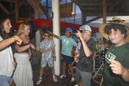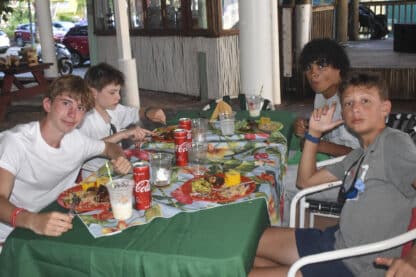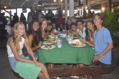 Then, everyone showered and got dressed up for dinner on shore! At 6:15, we ate a hearty dinner of chicken, vegetables, lasagna, and potatoes!