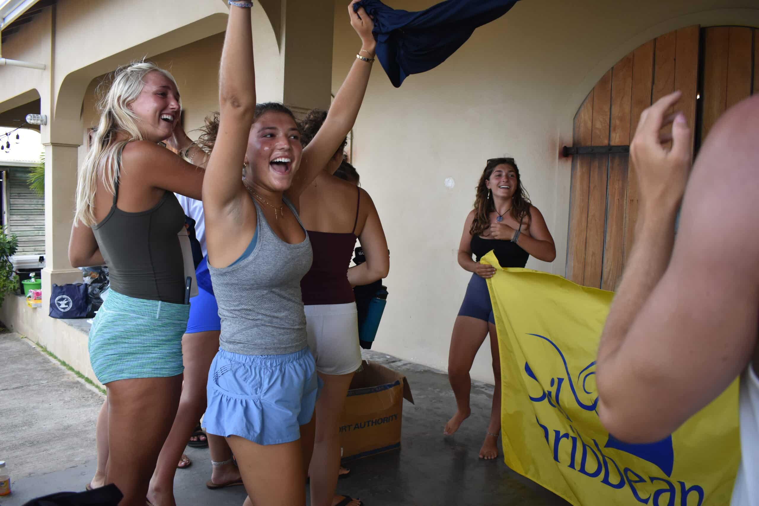 Yesterday, staff arrived in Tortola from all around the world. We ate hamburgers and hot dogs for dinner before attending our first boat meeting at 8 pm. After receiving the schedule for the morning and playing a few games, we set our alarms and fell asleep!