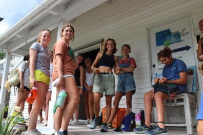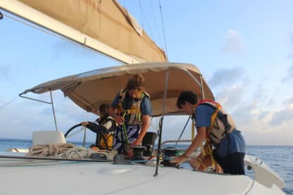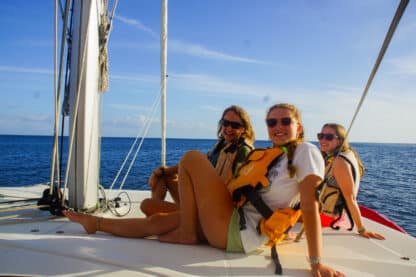 As it was nearing the time to put up the sails, the students got the boats ready by stowing away the food, setting up lines on the boat, and getting harnesses ready. We sailed away from Saba as the sun was setting and enjoyed some PB&J sandwiches at the helm. FLX made it back to the BVI in 12 hours – a Sail Caribbean record! We arrived shortly after 6 am, had breakfast, said goodbye to our friend Evan on FLX as he was heading home early for a wedding, and then headed to the Baths National Park for the hikel (snorkel and hike).