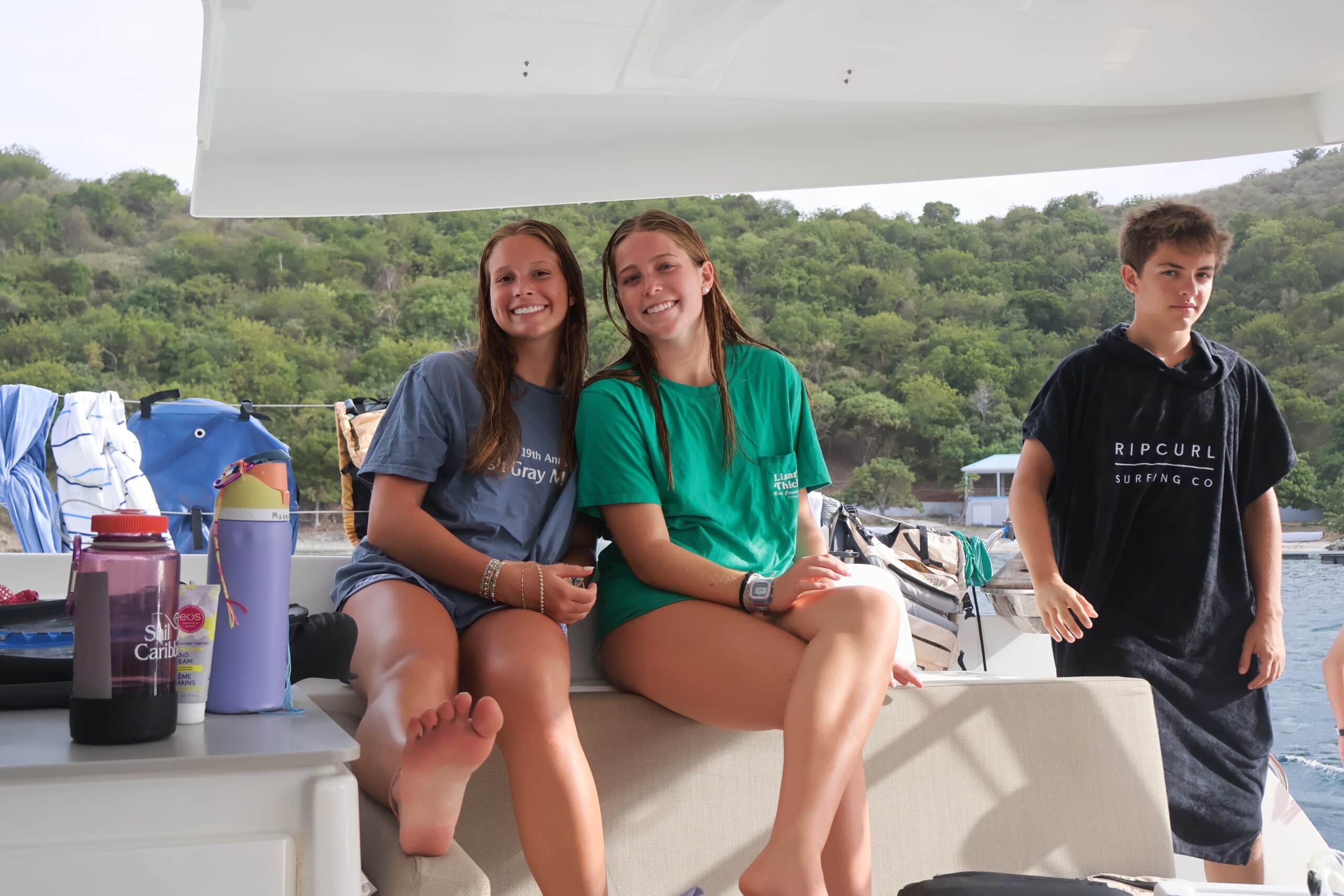 While the divers were off doing their thing, the DSDs and non-divers spent the morning exploring Cooper Island’s beach and resort shops. Later, they jumped into watersports like tubing and sailing on the Colgates. Because of the wind, the Colgates couldn’t go far at first, but later a group of students successfully sailed them from Cooper Island to Peter Island—braving two squalls on the 23ft monohulls!