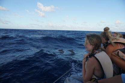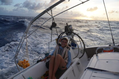 Our super fun night sail started with a beautiful sunset as we left Trellis. As we were watching the sunset, we saw a ton of dolphins jumping and swimming right up against our boat. Once it got dark we hooked into the jacklines and started our night sail to the Leeward Islands. We took shifts for three hours in groups of three to sail, watch for other boats, and keep the boat on course. On each shift, we listened to music, ate snacks, and stargazer.