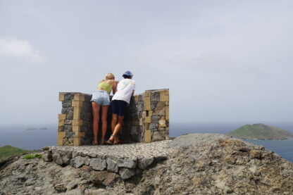 At noon the next day, we moored at St. Martin, officially ending our down-island overnight sail! While we waited for our boat to get customs approved to enter French territory, we had some swimmy fun time in the clear blue St. Martin water. Then once we got through customs we took the dinghy to shore and had on shore exploring time. We got lots of juices, pastries, ice cream and pizza! Then we walked around St. Martin and had dinner there, meeting a very interesting waiter who was fluent in many languages! We ended our day with a night hike up the mountain to an old war fortress where we took in the sights of St. Martin. Others were a little tired and headed back to the boat early to chill. Once we were all back on the boat, we made some matching boat friendship bracelets and then went to bed!