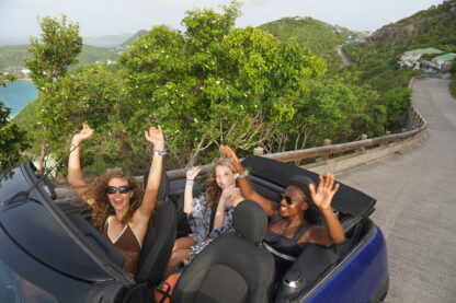 We woke up the next morning excited to head to St. Barths, a favorite island of many of the campers. We started sailing early and moored around 1, taking some boat showers before heading to the dock. Then we explored St. Barths, shopping along the main streets and taking car tours of the island in rented mini Coopers. Then we stopped at the Point for the incredible view. Next, we went BTB (back to boat) to get ready for our Soda Social! We went to Le Select for Sprites, virgin piña coladas, delicious burgers and French fries. Finally, we headed back to the boat for a relaxing boat meeting and a few rounds of appreciation circle, where we talked about what we appreciate about each other.