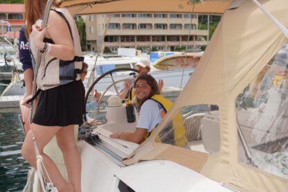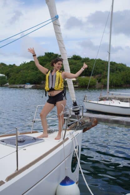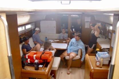 Last night, we had a dinner buffet of grilled chicken, coleslaw, and rice and beans. With a full stomach and a day of travel, they turned in to have their first sleep on Nosy Be, their 50-foot monohull sailboat. Then, they woke up to have a relaxed morning at Hodges Creek. The crew took a walk around the marina, got their brand new crew t-shirts, and learned how to de-dock the boat.
