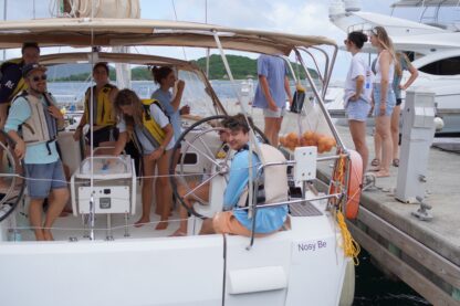 Skipper of the day, Jacob, safely led the crew off the dock and to their first destination: The Bight on Norman Island! The wind was perfect for a smooth sail down to one of our favorite mooring fields where the turtles are always swimming. Tonight, the crew will be getting more familiar with living on the boat and getting a ‘refresher’ lesson on how to pick up a mooring ball.