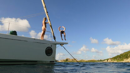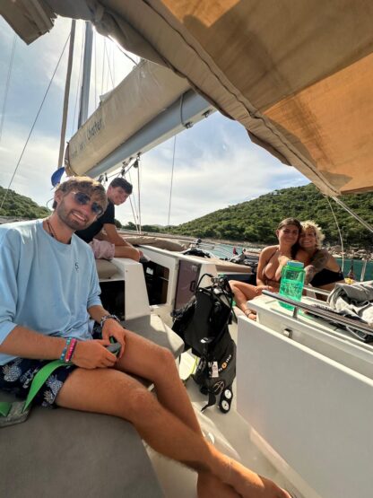 Finally, on the 1st of August, we woke up around 8 in the morning to get ready to sail some Hobie Cats! We all had an amazing time even with some capsizing, running aground, and Chase trying to jump from boat to boat. But that’s sailing! Later, we sailed to Trellis Bay where we got ready for a night dive on Norman Island. The sailors stayed on Polygala and went for a beautiful sunset sail to Great Harbor on Peter Island where the Mega Fleet was staying. We’re almost done with the program which is so sad but see you next time on the blog! Yo ho ho, a pirate’s life for me!