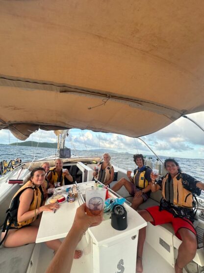On the 31st of July, we woke up and the divers got ready for their dive leads while the ASA students had a session debrief with Arter (Sailing Director) and Mike (Founder and Director). During the dives, a lot of lightning showed up so we had to hang out on Polygala for a bit. Afterward, we had another long sail to Bitter End on the North Sound of Virgin Gorda. There, we had food all together.