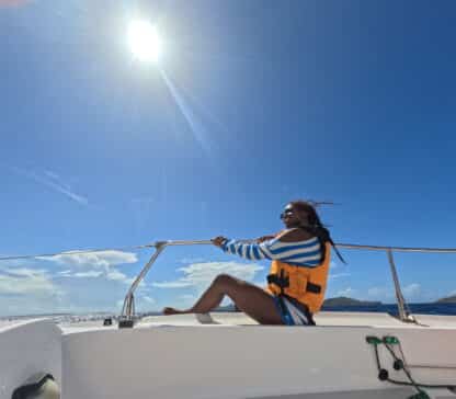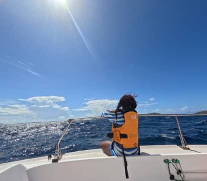 Day 12 we woke up at Cooper and went to shore to get coffees and a snack before the ASA girls went to Hodges Creek Marina for their 201 course. The 201 course started with a prep day, where we talked about our sailing experience and what the course would entail. The DMTs worked on shore in the morning and came back to the boat at noon for a motor to Privateer’s Bay on Norman Island. We picked up Shi, Nina, and Lexi around 4 pm for dinner and shower time!. The crew is excited to pass their 201 course and finish the DM course. Mannat said her favorite part of the past few days was passing your DMT test, wohooo! We played a fun game of psychiatrist at boat meeting last night and had a lot of laughs!