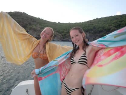 Good Morning from Privateer’s Bay on Norman Island! It’s a cloudy morning and the ASA students are getting ready for their 201 course, while the DMT’s (Divemaster in training) are gearing up for a day in the water. Day 10, we motored to Cooper Island. The Lima Sail girls went on the Colgate 26 sailboat with Mady and met us there. They studied for their 104 exam while watching the beautiful sunset. The DMTs did rescue 7, 100m tow and finished their chapter 9 e-learning.