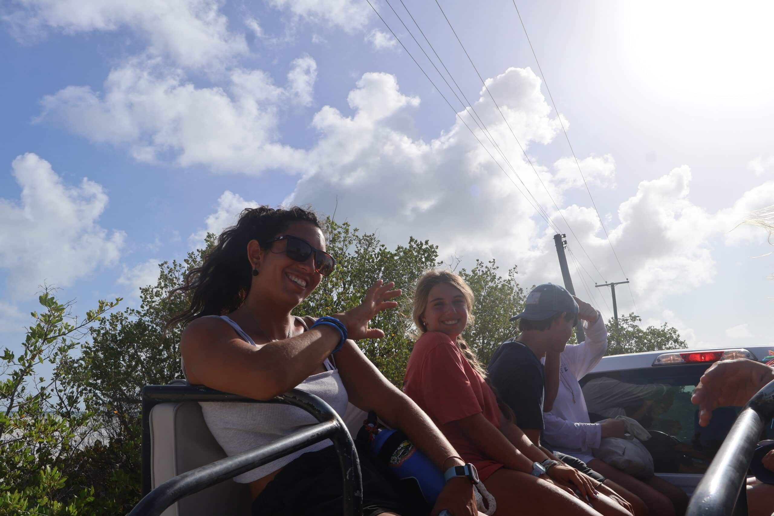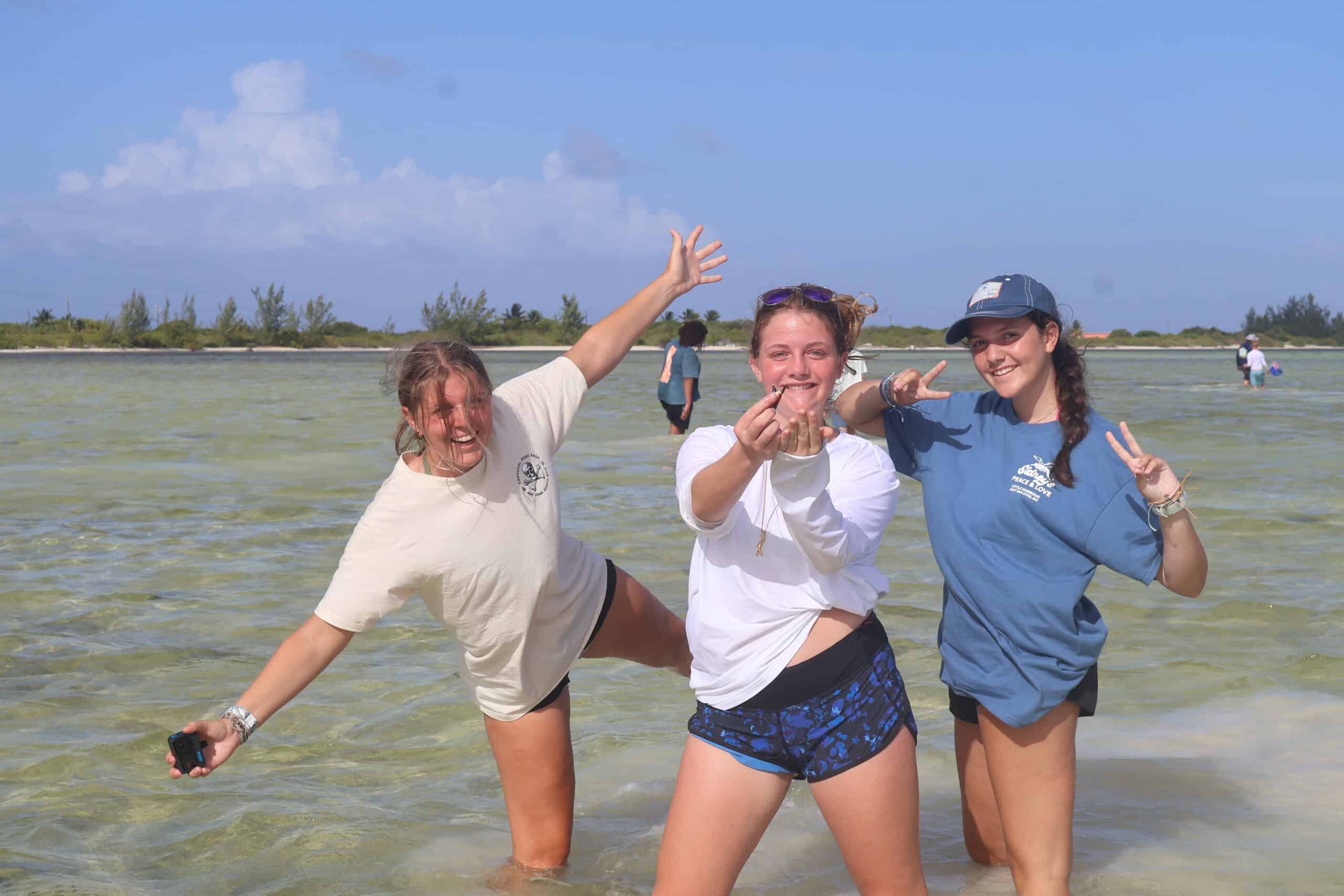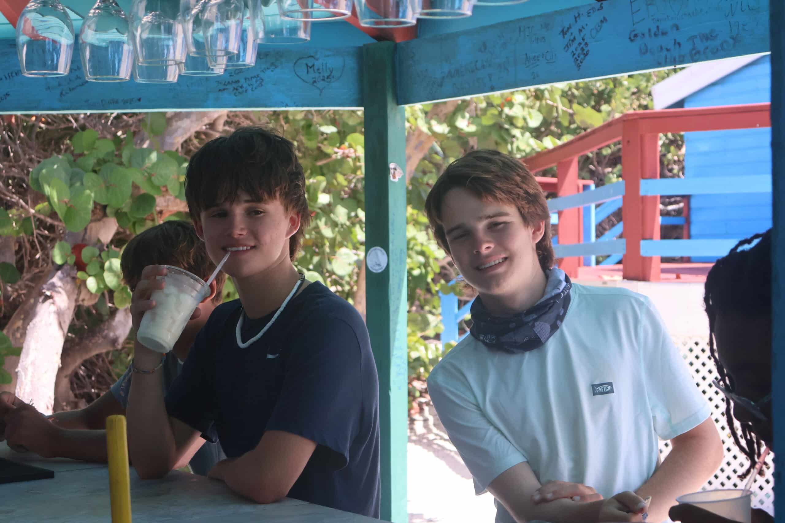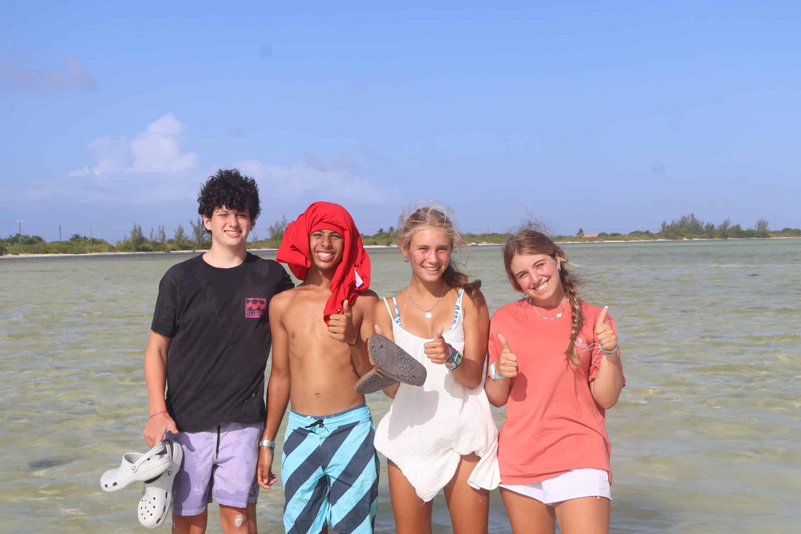 Once we arrived, we made some lunch and got ready for a big afternoon. The students packed clothes, shoes, money, and we dinghied ashore to start our adventure. Once on shore, three trucks of students were driven over to one of our favorite lunch and beach spots, Loblolly. There, everyone ordered smoothies, snacks, hung out in hammocks, sat by the beach, got ice cream, and chatted. Around 4 p.m., it was time to see the shark sanctuary! The Sierra students went before the rest of us and got to spot some lemon sharks and flamingos. Together as a fleet, we walked out on the shallow sandbar in the crystal-clear water and had fun looking at the ocean life at our feet.