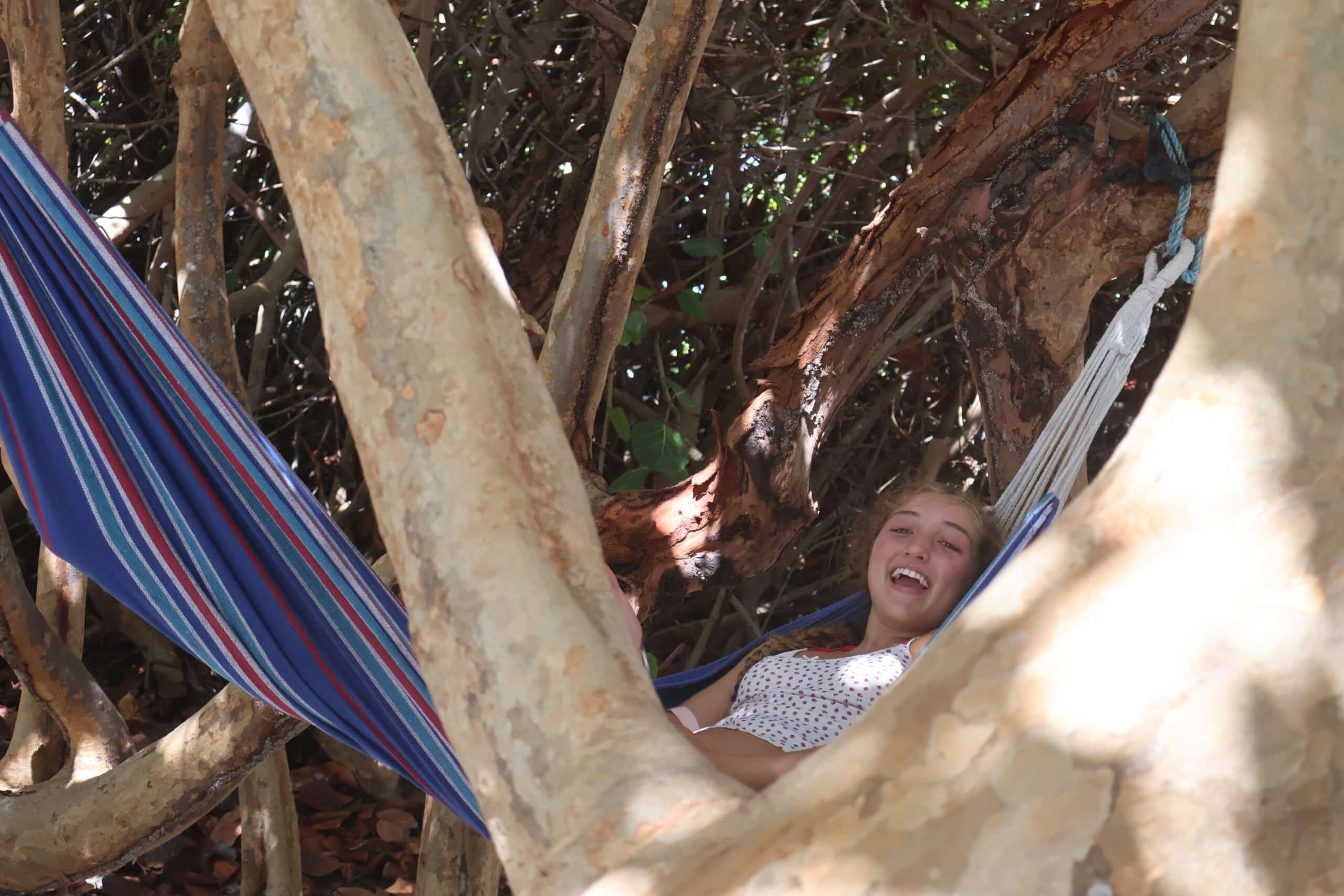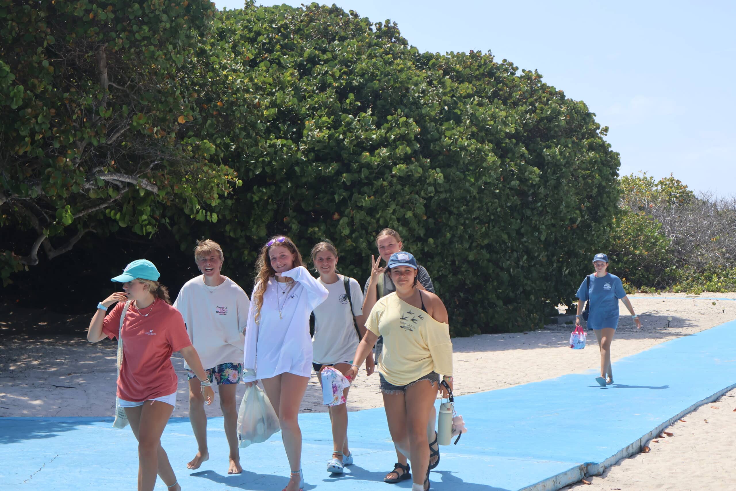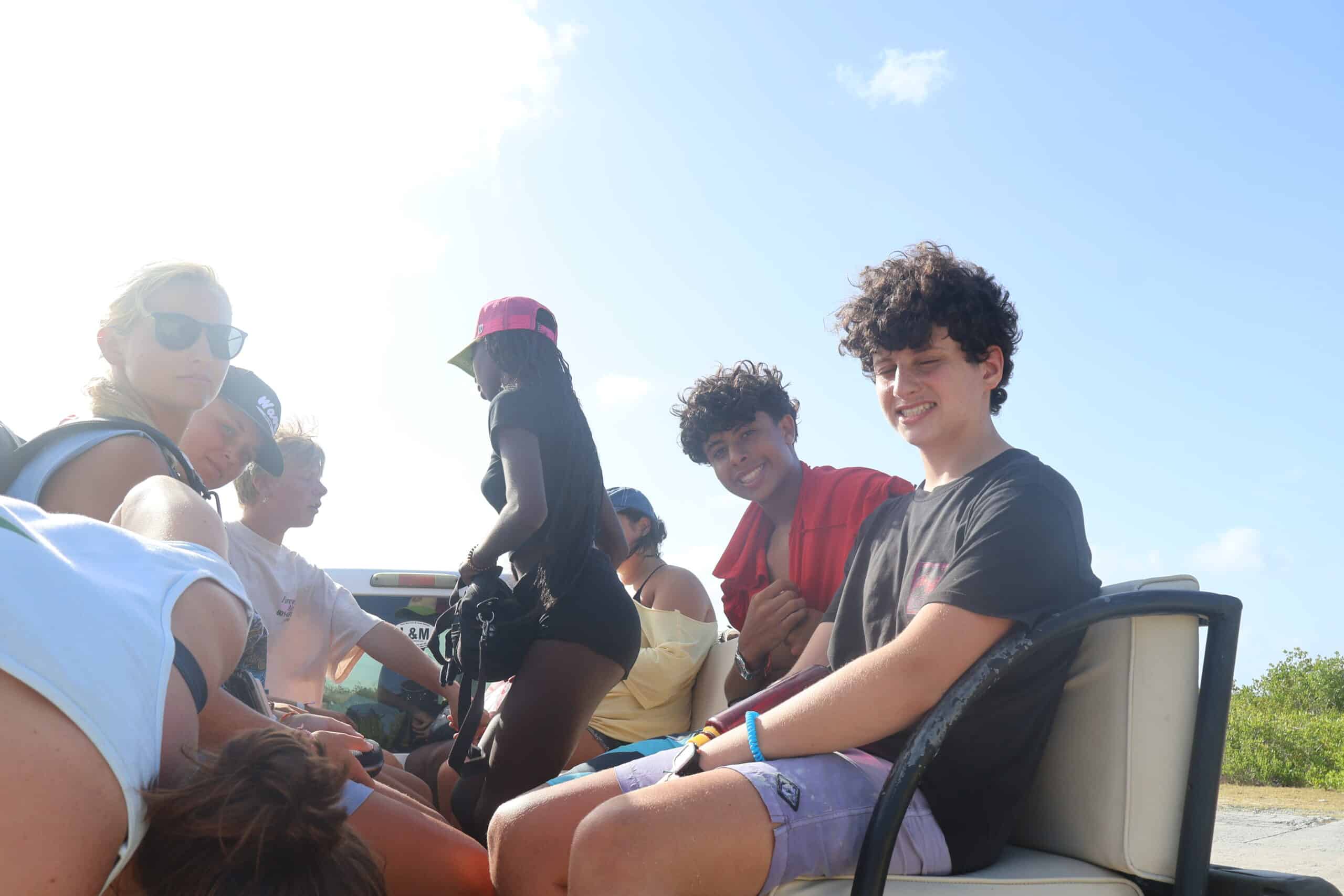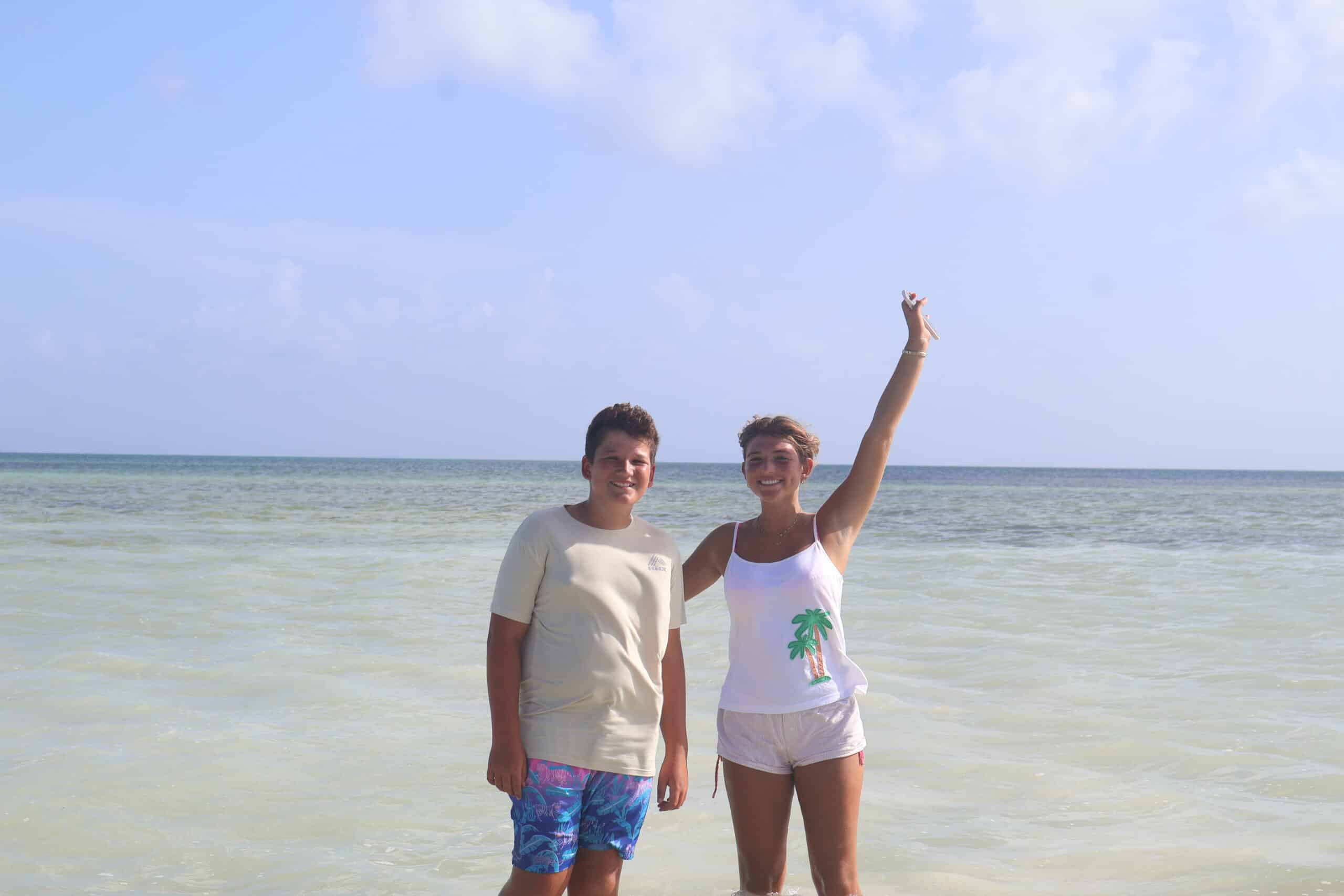 Once we arrived, we made some lunch and got ready for a big afternoon. The students packed clothes, shoes, money, and we dinghied ashore to start our adventure. Once on shore, three trucks of students were driven over to one of our favorite lunch and beach spots, Loblolly. There, everyone ordered smoothies, snacks, hung out in hammocks, sat by the beach, got ice cream, and chatted. Around 4 p.m., it was time to see the shark sanctuary! The Sierra students went before the rest of us and got to spot some lemon sharks and flamingos. Together as a fleet, we walked out on the shallow sandbar in the crystal-clear water and had fun looking at the ocean life at our feet.