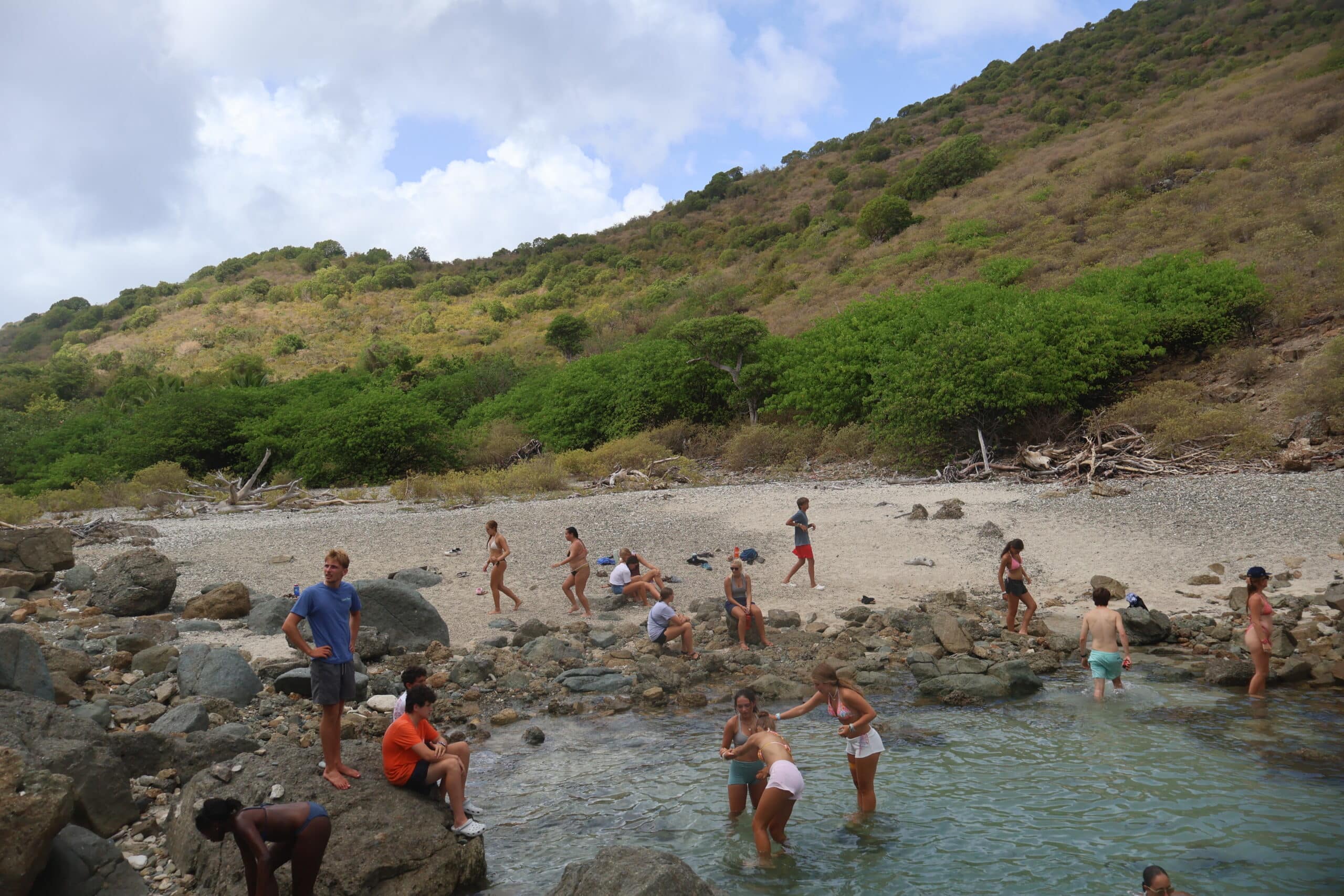 Today we woke up feeling very well-rested after our 8 a.m. wake-up, ready for a day full of fun. Charlotte and Juliette made the most delicious breakfast yet—French toast! Even getting thirds wasn’t enough. After breakfast, we split up: one group went snorkeling, while another group, including me, went on the Bubbly Pool hike. We all had a great time, walking with friends and swimming around in the bubbly pool.