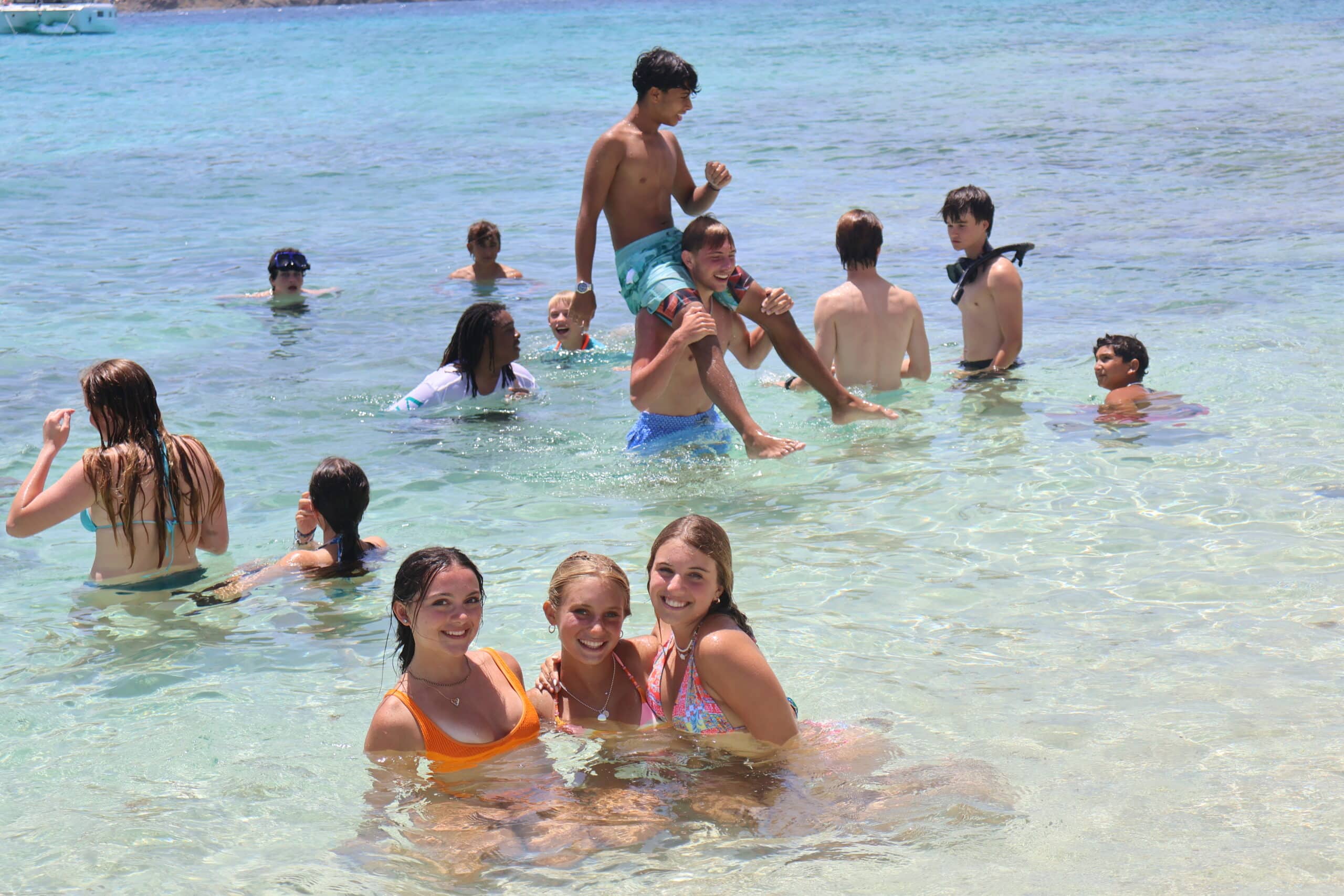 After the hike and snorkel, we quickly did PDCs and dropped the ball to motor over to the beautiful Sandy Key for a beach day. Before heading to shore, we made hot dogs for lunch—thanks to Taylor and Melea. Then we swam to shore for a fun afternoon. We played games like monkey in the middle and tag, and also spent time relaxing and tanning with friends in the bright blue water of Sandy Key. This chill time was the highlight of the past two weeks—everyone got to goof off, play, run, and swim.