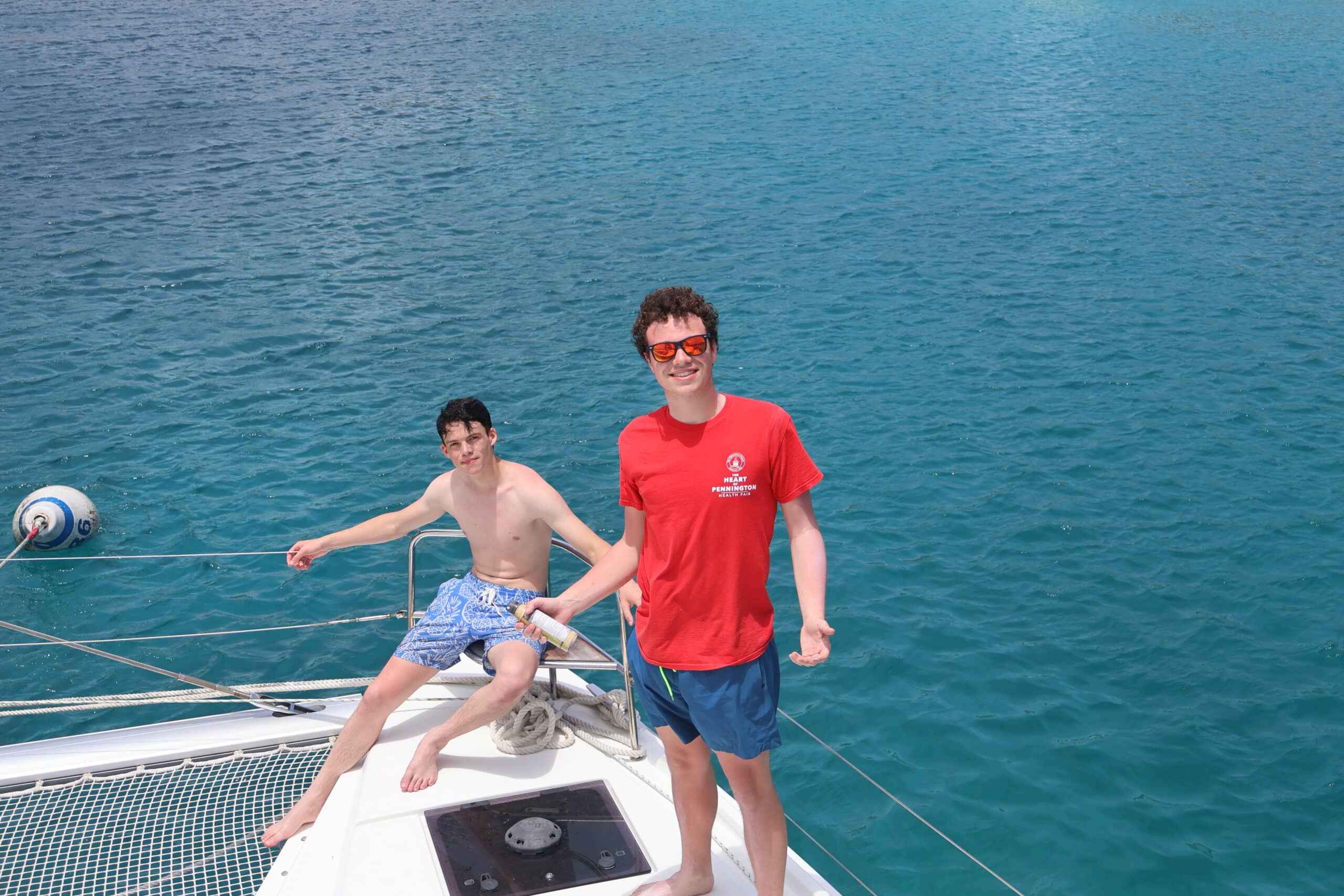 While the divers got ready for their morning dive, the rest of us welcomed a few students from Nohea to join us for a lovely downwind sail. After demooring, we were on our way. The sail raise was efficient and smooth, with positive vibes all around. Onye set the tone by curating a great playlist, and we sailed from Cooper Island to The Bight on Norman Island.