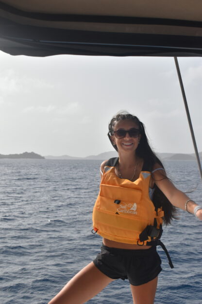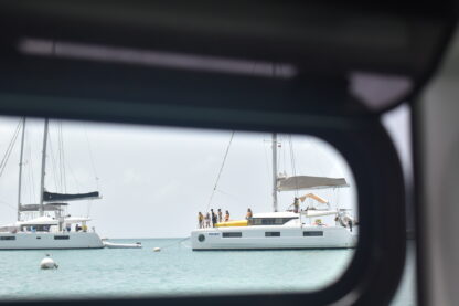 Tigre cruised steadily at 6 knots in a 12-14 knot breeze. Soon, Anegada’s flat landscape and lush greenery came into view. As we approached the western end of the island, we dropped sails and motored through the stunning turquoise waters of the channel. Declan executed a flawless mooring—right as a group of curious sea turtles and an eagle ray swam by to welcome us!