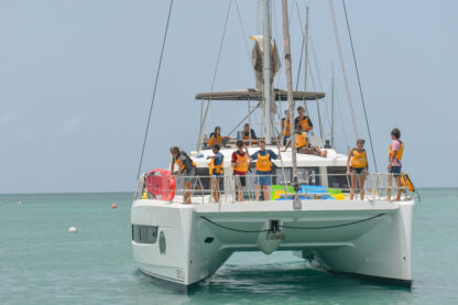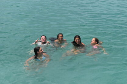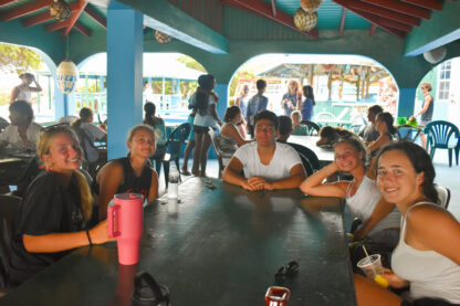 Lunch was a classic: hot dogs and mac ‘n’ cheese. Then it was time to head ashore. Students jumped into safari trucks for a scenic drive across Anegada, ending at the stunning Loblolly Bay. There, they pitched in for a beach clean-up—doing their part to keep paradise pristine—before grabbing snacks, chatting in the shade, and savoring well-earned ice creams.