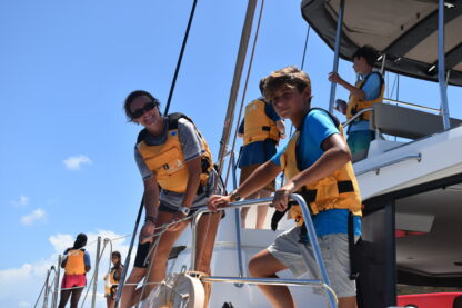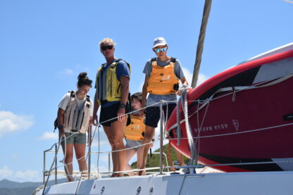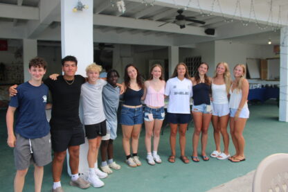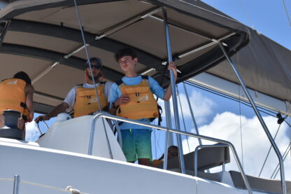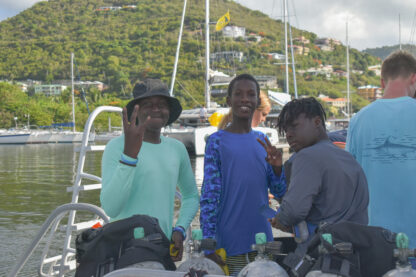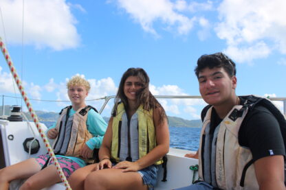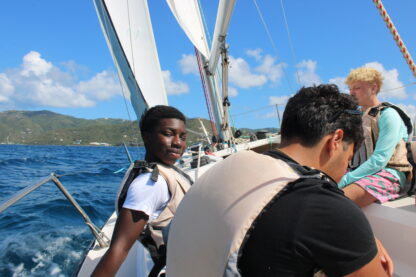 What a day on the water! We started off the morning at Nanny Cay, had our breakfast buffet, and divers got ready to leave as it was their last training day. The rest of our crew got ready for rotations of truck rides around Tortola and sailing on Colgate 26s. Everyone returned, and some of the divers came back certified! Then, we started getting our boats rigged and ready to leave Nanny Cay and set sail to Jost Van Dyke. The wind was just right, and the bay gave us perfect sailing conditions for a morning of jibing and building confidence at the helm with Eva as the skipper of the day.