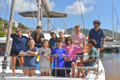 Hello from Lee Bay on Great Camanoe Island! It has been a lovely first two days of the program down here in the British Virgin Islands. All of our students arrived safely yesterday from all over. They arrived at Hodges Creek Marina and were greeted by our excited staff. They each were welcomed onto their boats which will be their homes for the next two weeks. Also, we had a yummy dinner of chicken, potatoes, rice, and veggies. Before heading to bed for their first night, they sat down to have their first boat meeting with name games and schedules for the next day.