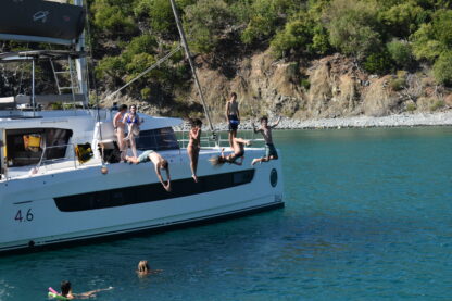 We all made it to Lee Bay with plenty of time to swim, go on the tube, and do some snorkeling. We saw 3 turtles! Our Marine Science Coordinator for this fleet, Ellen, and I met with the Sierra and Foxtrot students, and she gave them their first lesson on marine litter and ocean plastics. Did you know that marine litter leads to microplastics in fish, which therefore harms our food and environment? The students were then tasked with teaching a lesson to the rest of their crew during boat meeting tonight. The night ended with ocean showers and a yummy meal of pasta. I can’t wait to spend the next two weeks sailing with these fun and adventurous crews!